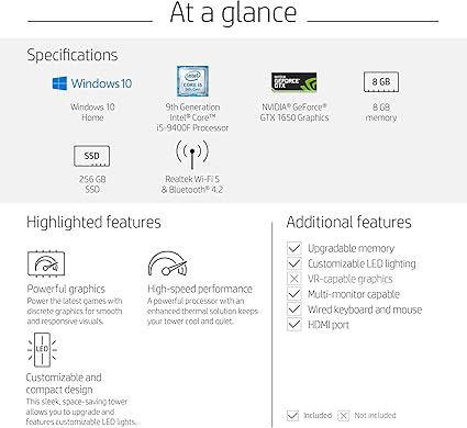 Description de la carte graphique | Carte graphique NVIDIA® GeForce® GTX 1650 avec 4 Go de mémoire dédiée GDDR5 |